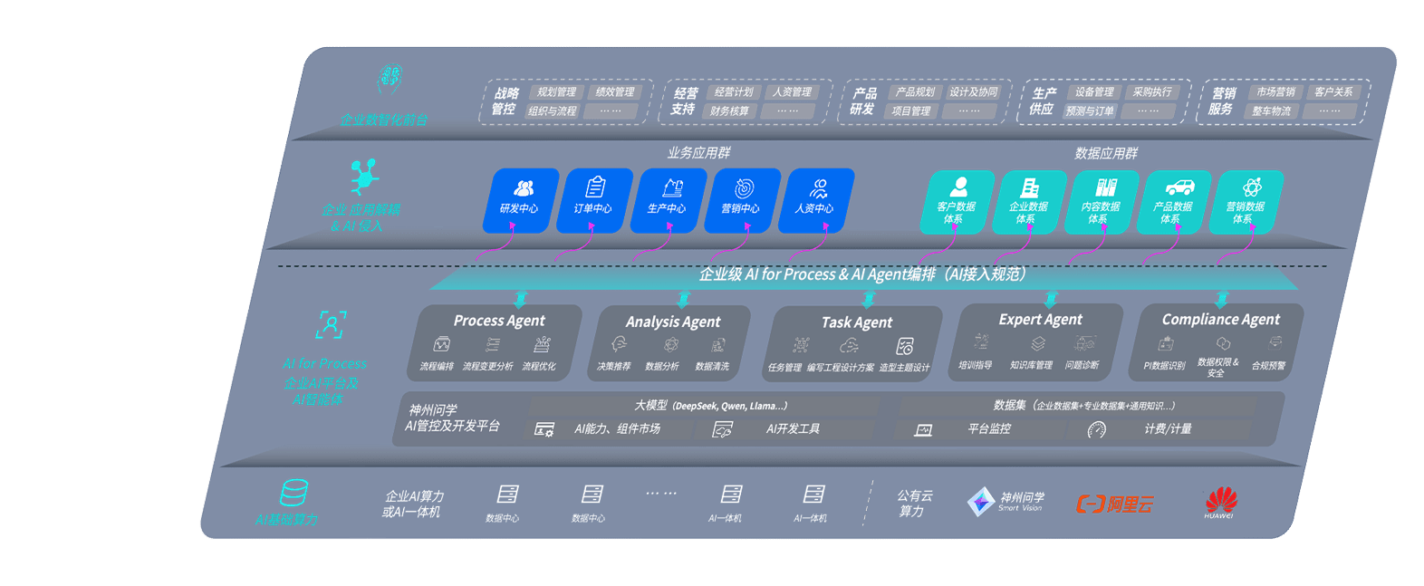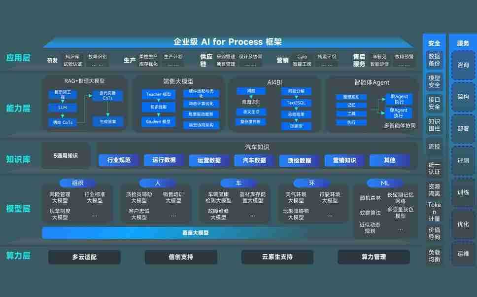 J9娱乐问学智车解决方案是一套基于AI技术的汽车行业智能化系统,,,,覆盖从底层算力到顶层AI应用的全栈方案。。。方案由算力层、、、模型层和应用层组成:算力层,,方案支持多种一体机配置,,,,具备云端灵活部署、、多云适配以及动态优化计算资源的能力;模型层,,J9娱乐问学平台版提供了企业级AI应用一站式构建与管理平台,,支持基于后训练强化技术的汽车企业专属模型的训练、、评测和运营;应用层,,J9娱乐问学DeepSeek版提供包括超级员工、、、、智能招采、、、智能营销、、、智能客服、、AI for BI等一系列解决方案,,,可助力汽车行业实现数字化转型,,,,让管理更智能、、响应更敏捷。。。